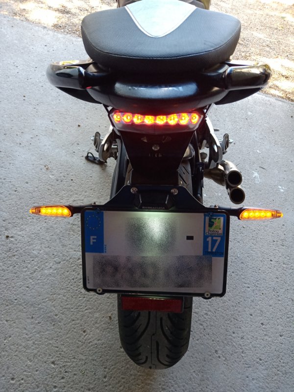Ma gladius est désormais full leds, avec un feu arrière et un éclairage de plaque Barracuda. 4 clignotants Koso, l'optique avant avec ses ampoules Leds que je viens de vous présenter et bien sur un changement de centrale clignotante pour que le tout fonctionne correctement.