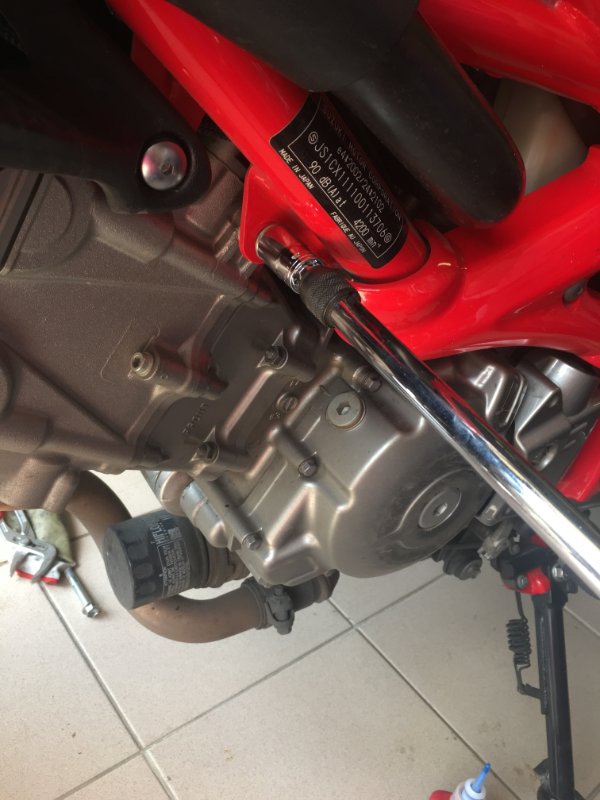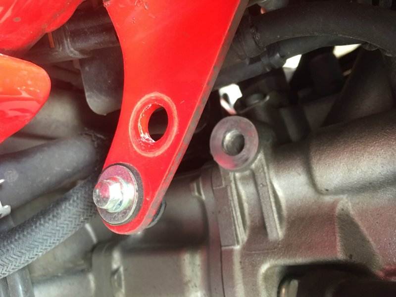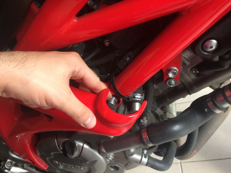 ATTENTION, coté droit de la moto, il y a une entretoise à conserver!