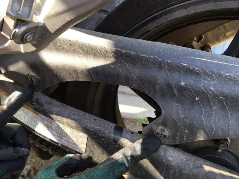 Utiliser ensuite le pétrole démineralisé avec chiffon et brosse à dent afin d'enlever la graisse sèche et tous les petits cailloux. Perso, je passe entre chaque maillon de la chaine le chiffon afin de vérifier que tous les galets sont bien tournants. Vous pouvez voir sur les photos qu'il y a des maillons qui ont l'air bloqués. Et c'est mauvais pour l'usure des pièces (kit chaine).